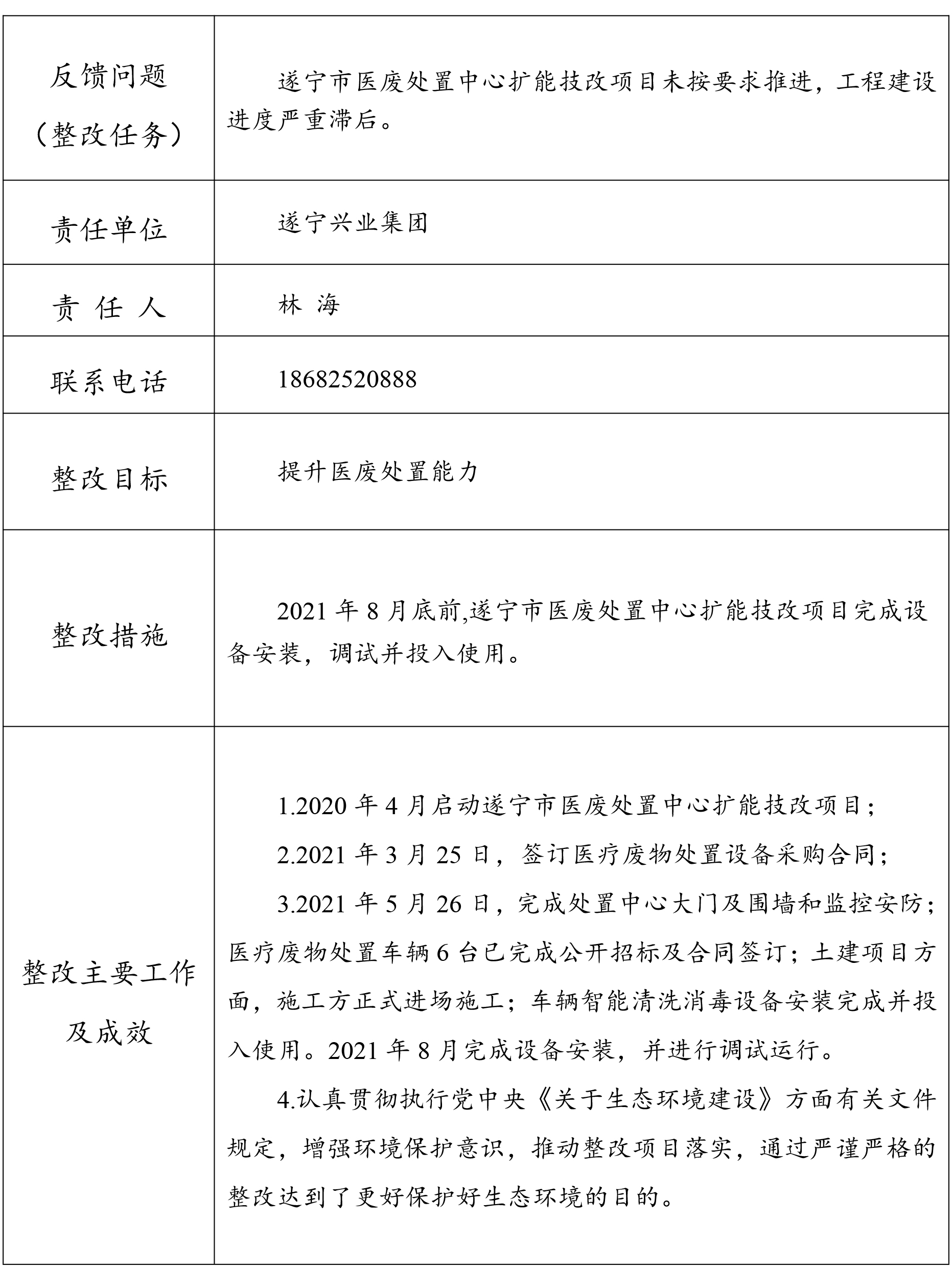 生態(tài)環(huán)境保護督察反饋意見整改任務完成情況公示表
